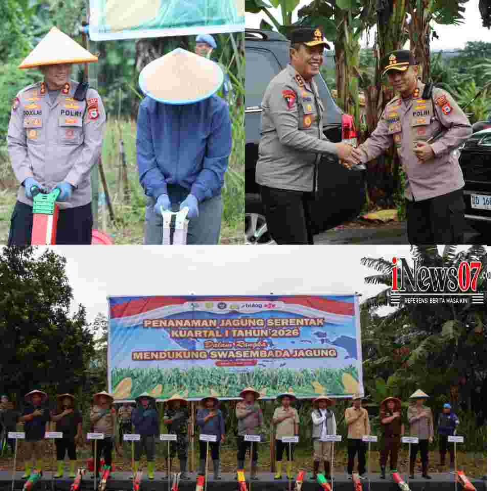 Maros, iNews07.Com – Dalam rangka mendukung program pemerintah mewujudkan ketahanan pangan nasional serta swasembada jagung, Kepolisian Republik Indonesia melaksanakan kegiatan penanaman jagung serentak Kuartal I Tahun 2026 yang digelar secara nasional. Untuk wilayah Sulawesi Selatan, kegiatan ini dipusatkan di Dusun Pangembang, Desa Pucak, Kecamatan Tompobulu, Kabupaten Maros, Sabtu (7/3/2026).