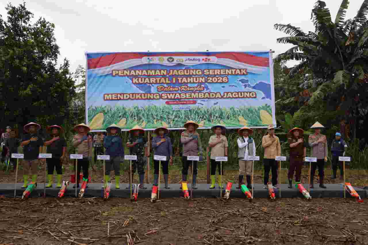 Penanaman jagung dilakukan secara simbolis sebagai bentuk komitmen bersama dalam meningkatkan produktivitas pertanian sekaligus mendukung program ketahanan pangan nasional.