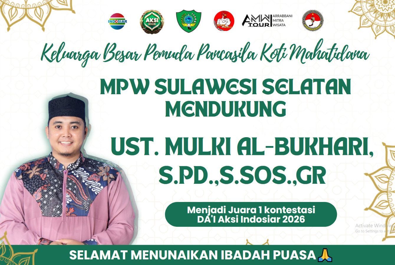 “Kami Komando Inti PP Wilayah Sulsel bersama MPC Gowa dan Makassar memberikan dukungan moril penuh kepada Ustadz Mulki Al-Bukhari agar mampu menjuarai ajang DA’I AKSI Indosiar serta membawa nama baik Sulawesi Selatan, khususnya Kabupaten Maros,” ujarnya.